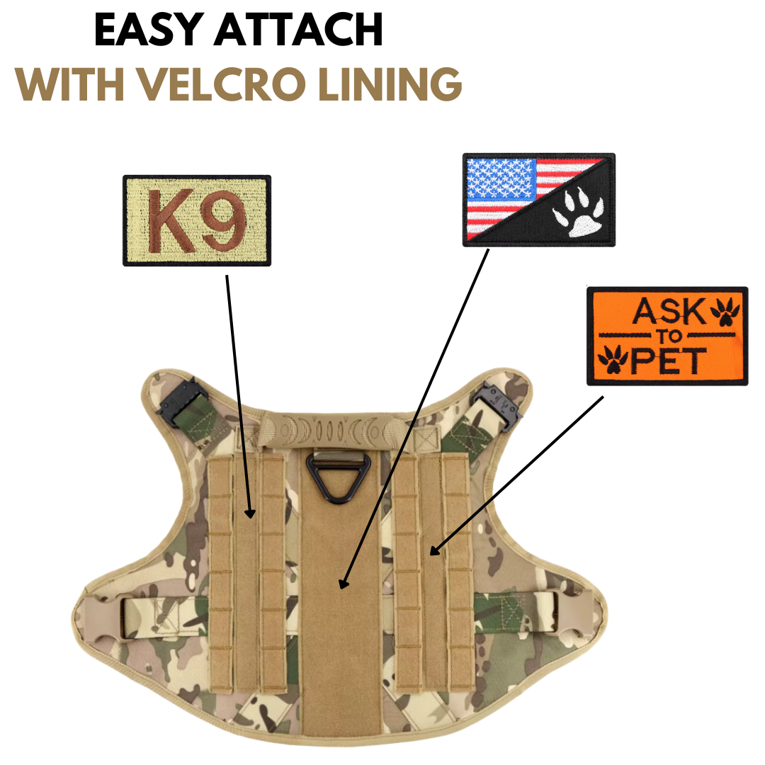 Our stylish tactical patches have a strong, durable rear velcro lining for easy attachment onto the velcro strips on tactical harnesses.